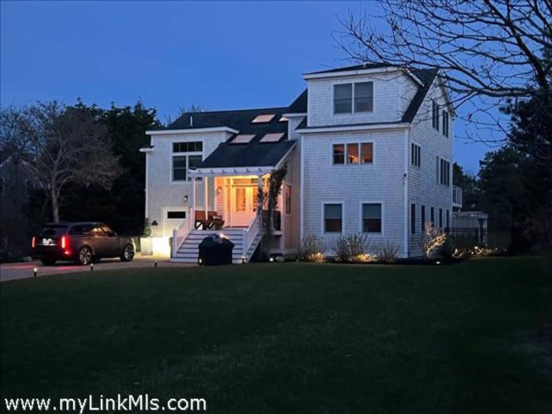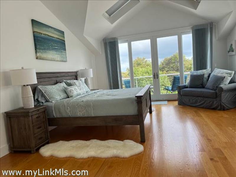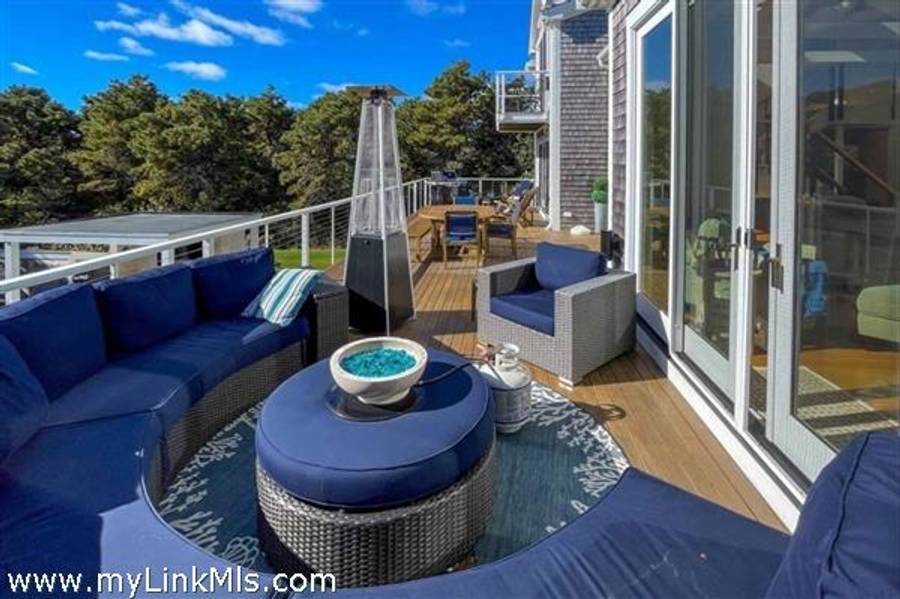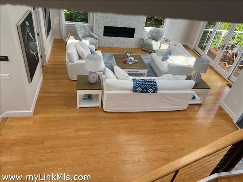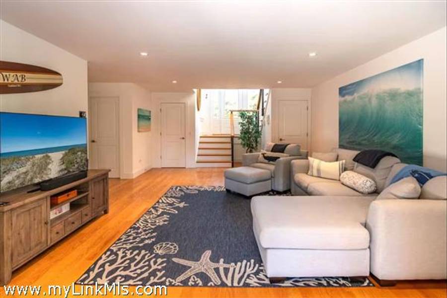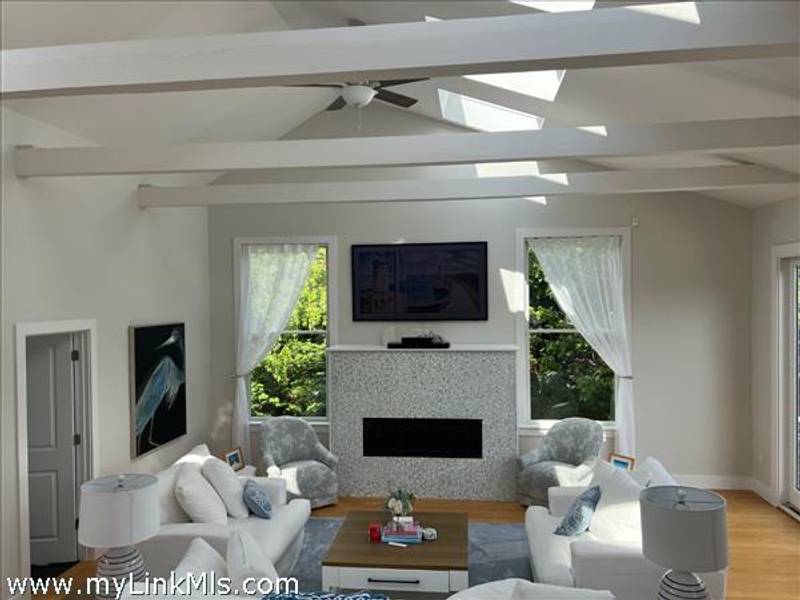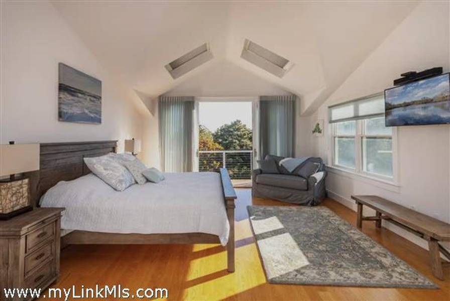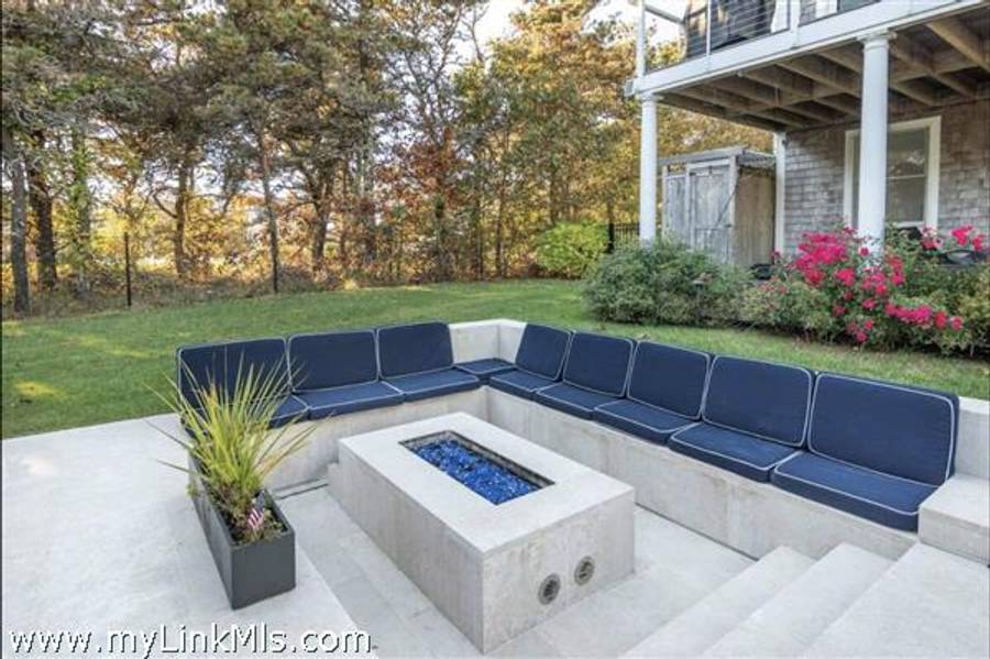 KATAMA RD WITH EXTRAORDINARY POOL + OUTDOOR AREA. Nestled in the heart of Katama, this stunning four-level home is thoughtfully designed for the ultimate indoor-outdoor living experience. As you step into the dramatic Living Room, you'll be greeted by vaulted ceilings, a sleek tiled linear fireplace, and a full wall of 12-foot glass doors that seamlessly open out to an expansive mahogany deck, complete with comfortable lounging and dining furniture. The open-concept Dining Room and gourmet cook's Kitchen are perfect for both intimate family meals and entertaining guests, also with a full wall of glass doors that provide a seamless transition between indoor and outdoor living. An open staircase with cable railing leads to the luxurious Owner's Suite, featuring an outdoor balcony, two walk-in closets, and a spa-like bath complete with vanity, soaking tub, and a walk-in glass shower. Descending to the lower level, you'll find a spacious TV/Family Room that opens directly out to the outdoor pool area. Additionally, two bedrooms, a full bath, and convenient laundry facilities complete this level. The outdoor living spaces are truly extraordinary, boasting a captivating gunite pool with a built-in whirlpool spa and a mesmerizing waterfall with a striking fire feature. An outdoor cabana with bar seating, two beverage refrigerators, and a 76" water-resistant TV wall offers the perfect setting for outdoor entertainment. To top it off, a sunken conversation area with a fire-pit provides the ideal spot for gathering and relaxation. This idyllic beach house has been meticulously maintained,,it is being offered with all furnishings and contents* for a TURNKEY move-in or rental-ready property for Summer 2026!