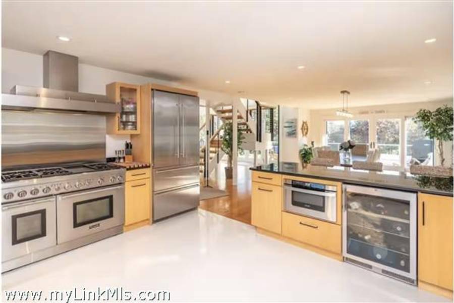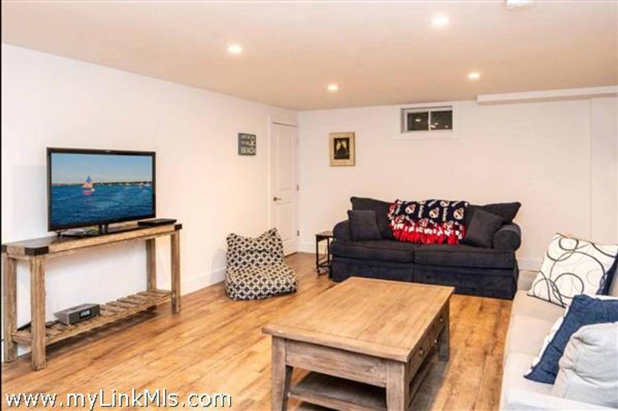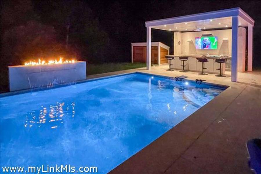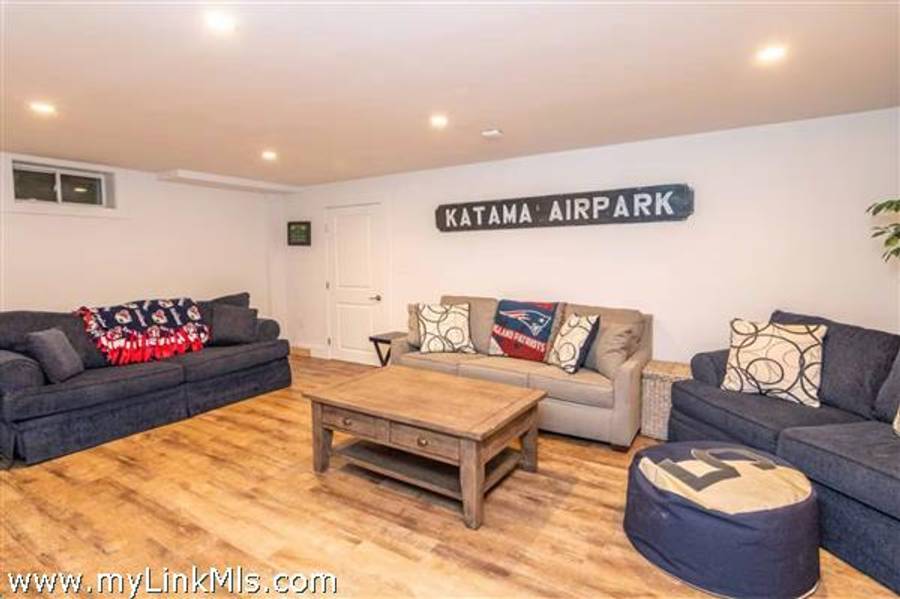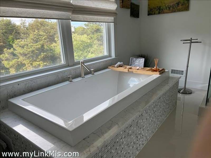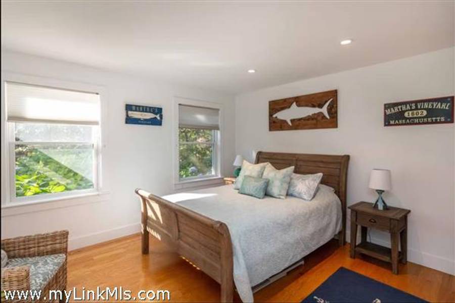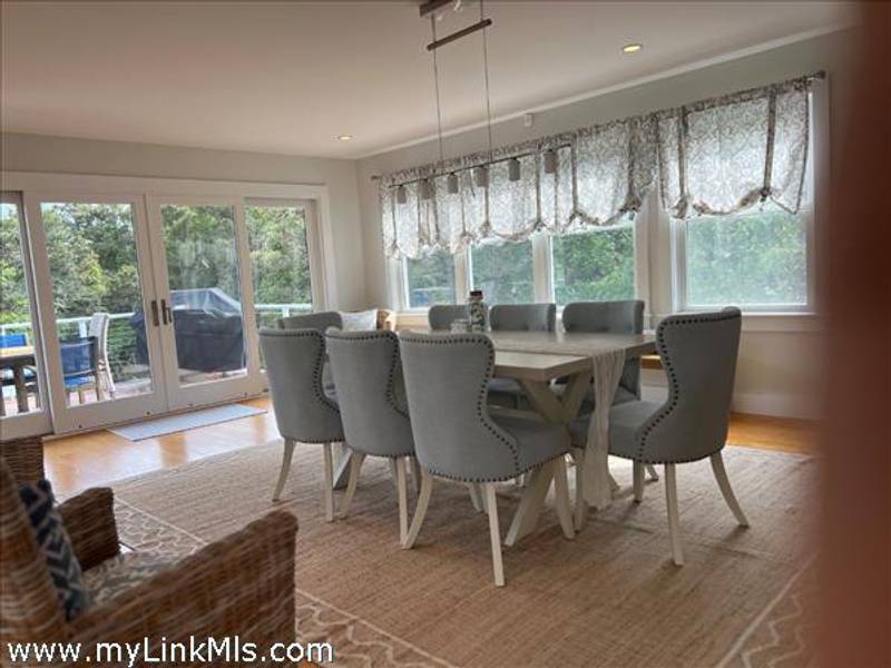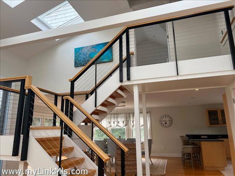 KATAMA RD WITH EXTRAORDINARY POOL + OUTDOOR AREA. Nestled in the heart of Katama, this stunning four-level home is thoughtfully designed for the ultimate indoor-outdoor living experience. As you step into the dramatic Living Room, you'll be greeted by vaulted ceilings, a sleek tiled linear fireplace, and a full wall of 12-foot glass doors that seamlessly open out to an expansive mahogany deck, complete with comfortable lounging and dining furniture. The open-concept Dining Room and gourmet cook's Kitchen are perfect for both intimate family meals and entertaining guests, also with a full wall of glass doors that provide a seamless transition between indoor and outdoor living. An open staircase with cable railing leads to the luxurious Owner's Suite, featuring an outdoor balcony, two walk-in closets, and a spa-like bath complete with vanity, soaking tub, and a walk-in glass shower. Descending to the lower level, you'll find a spacious TV/Family Room that opens directly out to the outdoor pool area. Additionally, two bedrooms, a full bath, and convenient laundry facilities complete this level. The outdoor living spaces are truly extraordinary, boasting a captivating gunite pool with a built-in whirlpool spa and a mesmerizing waterfall with a striking fire feature. An outdoor cabana with bar seating, two beverage refrigerators, and a 76" water-resistant TV wall offers the perfect setting for outdoor entertainment. To top it off, a sunken conversation area with a fire-pit provides the ideal spot for gathering and relaxation. This idyllic beach house has been meticulously maintained,,it is being offered with all furnishings and contents* for a TURNKEY move-in or rental-ready property for Summer 2026!