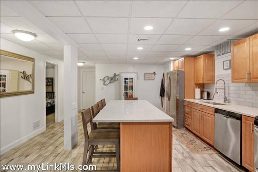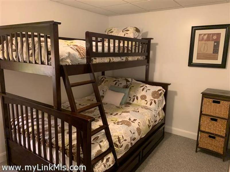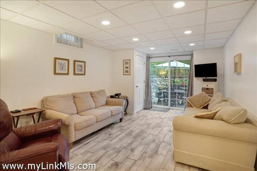 The newly completed lower level features both interior and exterior access. It includes a spacious living room with sliding doors leading to the outdoor patio, a kitchen, two bedrooms—one with direct patio access—a full bathroom, and laundry area. An unfinished section of the basement provides ample storage space.
