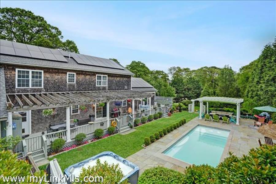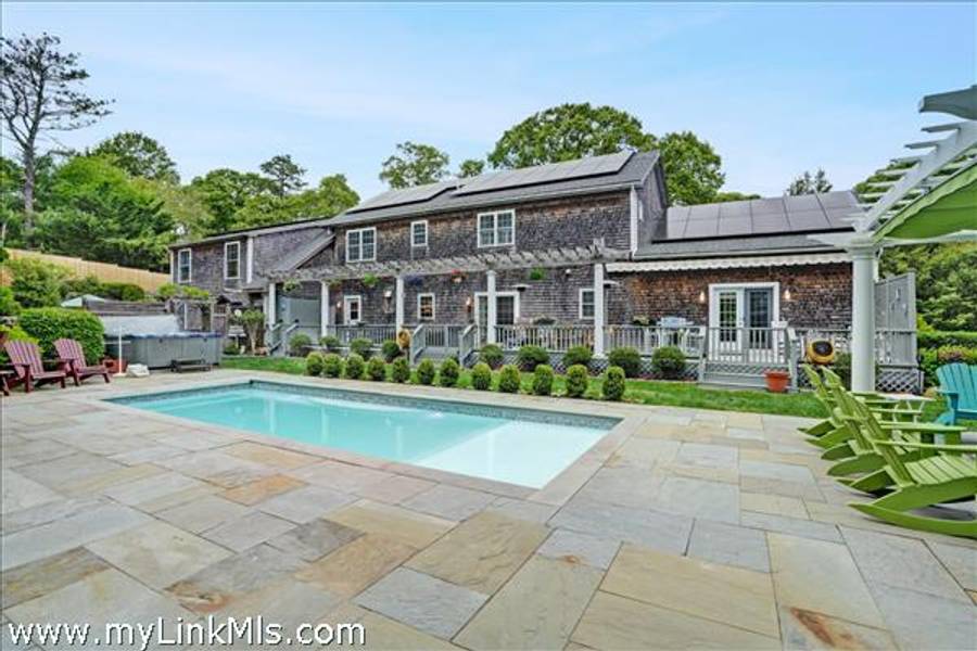 The Ultimate Oak Bluffs Compound: A rare opportunity to own a stunning seven-bedroom estate, thoughtfully designed for both luxurious living and exceptional rental potential. This expansive property features a newly built pool, lush landscaping, and direct access to Fresh Pond—ideal for kayaking, paddleboarding, and swimming. Perfect for entertaining, the home showcases a dramatic great room, an expansive deck, a pergola with a fireplace, and an elevated gazebo overlooking meticulously manicured grounds. Versatility is at the heart of this unique compound. With three kitchens, the home easily accommodates use as a spacious single-family residence or as three separate living quarters—ideal for multi-generational living, hosting extended guests, or generating rental income. Additional highlights include a 10-bedroom septic system in place - allowing for future expansion, an oversized three car garage, and solar. Come experience the very best of Island living.