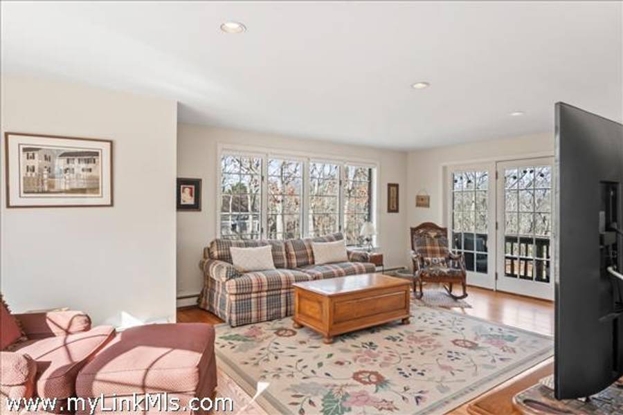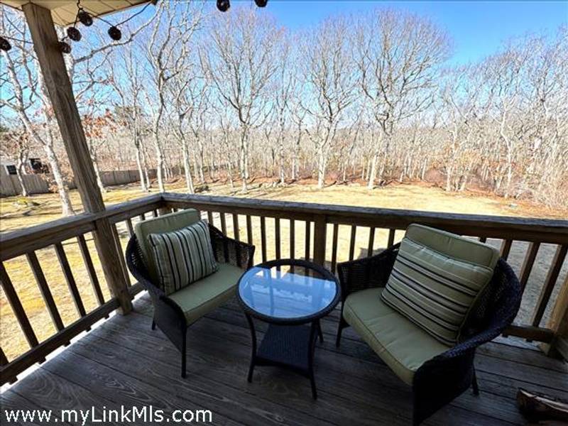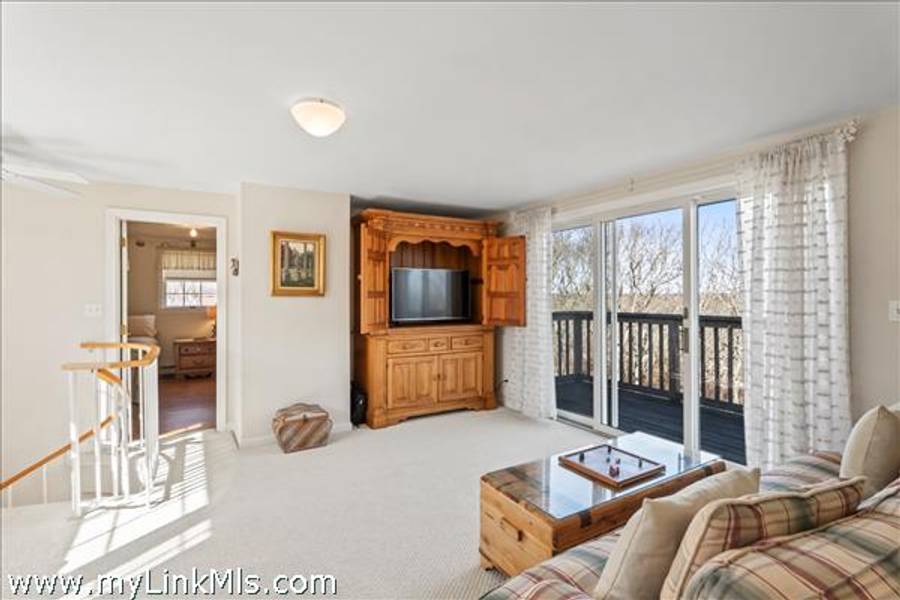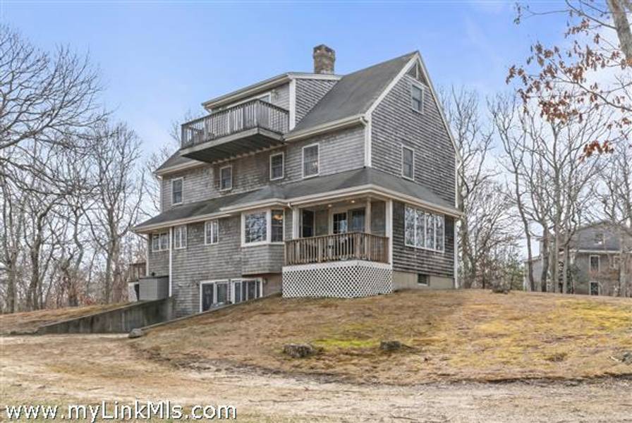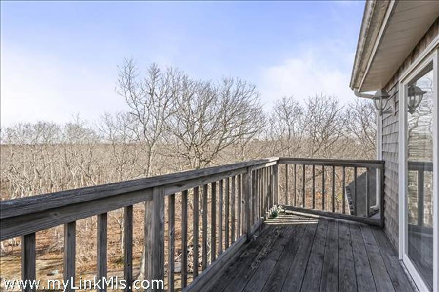 Imagine owning your own beach house on Martha’s Vineyard, ready for summer fun. Perched atop a rise that captures sweeping views over the property, floods interiors with natural light, and opens to a spectacular night sky, this furnished move-in-ready home delivers the Vineyard lifestyle you've been imagining — with room for everyone. Over 2,600 square feet unfold across four levels, beginning with a dramatic 30-foot vaulted foyer bathed in sunlight. The fully renovated chef's kitchen features Sub-Zero paneled refrigerator, luxury stainless steel appliances, and stone counters, opening onto a favorite gathering place in the heart of the home - a custom banquette with built-in window seats that easily seats 10. A formal dining room, oak floors, a wood-burning stone fireplace once featured in Architectural Digest, and a view-facing living room with balcony set the tone for effortless entertaining. The primary suite features a walk-in closet and en-suite bath, complete with a sunken tub and double vanity. Two additional bedrooms share a full bath. A sculptural spiral staircase rises to a loft lounge with glass doors to a private balcony — perfect for stargazing or savoring the serene setting — plus two bonus rooms for overflow guests. The walk-out lower level(an additional 900 s/f not included in the s/f), with custom stained concrete floors and new Andersen French doors, adapts easily as a lounge, home office, or gym. Overall, the home is well-maintained, lightly used, with regular renovations and upgrades, including a HydroViv water filter system. The expansion potential is exceptional: a sewer connection option allows growth to seven bedrooms, with room for a guest house, pool, and pool house. There is flex space within the existing floor plan ready for additional bedrooms. The adjacent 0.9-acre lot at 87 Whalers Walk is also available, creating the rare opportunity for a 14-bedroom compound. Minutes to Vineyard Golf Club, Morning Glory Farm, South Beach, Edgartown Village, and scenic bike paths.