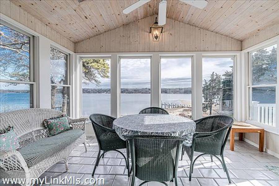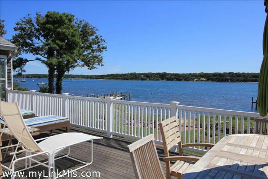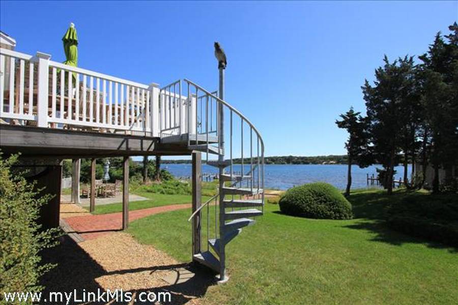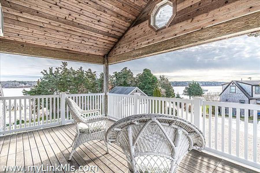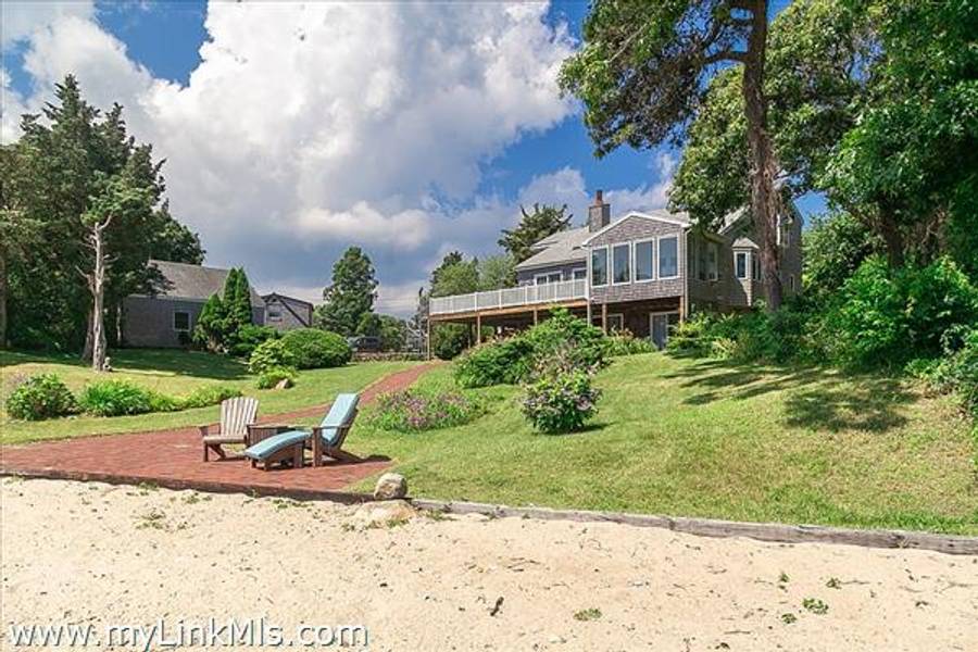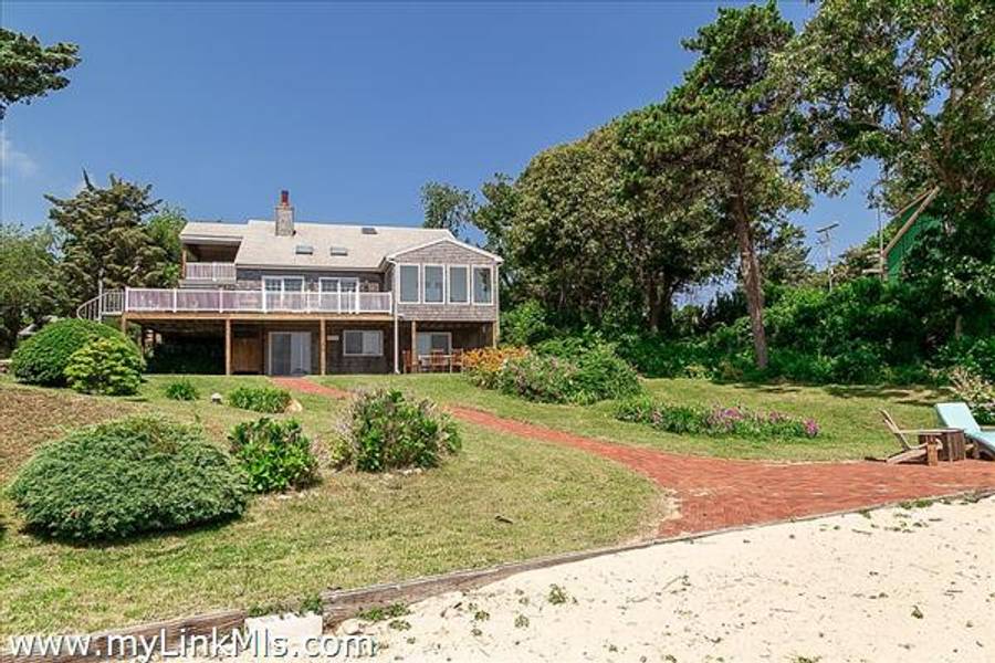 A rare opportunity, this Hines Point waterfront compound offers expansive views of the Lagoon and 100 feet of private beach. The home was built and has been enjoyed by the same family for gathering and summer recreation over generations. The main house offers an open first floor layout with high ceilings and large windows facing the water where you can watch sunrise over the water. A first floor bedroom and bath, expansive living and dining area, and an updated kitchen make up the first floor. There's also an inviting sunroom and large deck perfect for morning coffee or evening cocktails while watching the boats on the Lagoon. The second floor offers a large primary bedroom with en-suite bath and private balcony as well as a second guest bedroom. The bright walk-out finished basement has a family room, full bath, a bonus room, and additional storage space. The property also features a two-car garage and a charming boathouse at the edge of the sloping lawn. The beach is generous and sandy; inviting picnics, swimming, fishing and clamming or you can launch your kayak or paddleboard right from your backyard. The property has a mooring - available to a new owner with proper permitting. The calm Lagoon, which opens to the Vineyard Haven Harbor, is made for boating. The iconic Hines Point neighborhood is a short stroll to Tisbury town center with shops and dining and The Vineyard Haven Yacht Club.