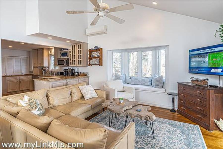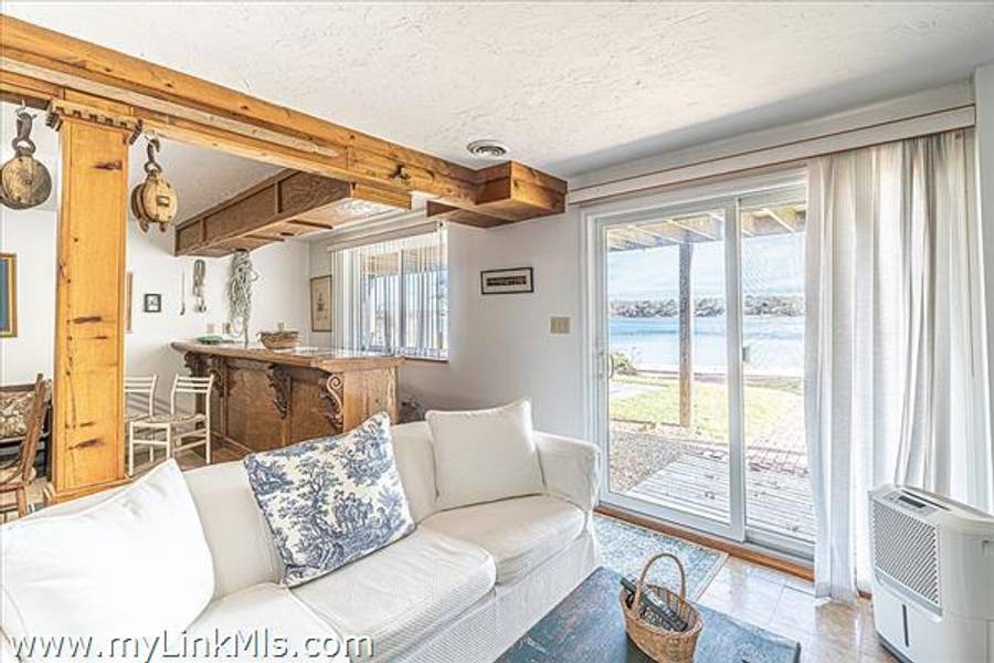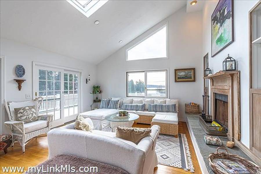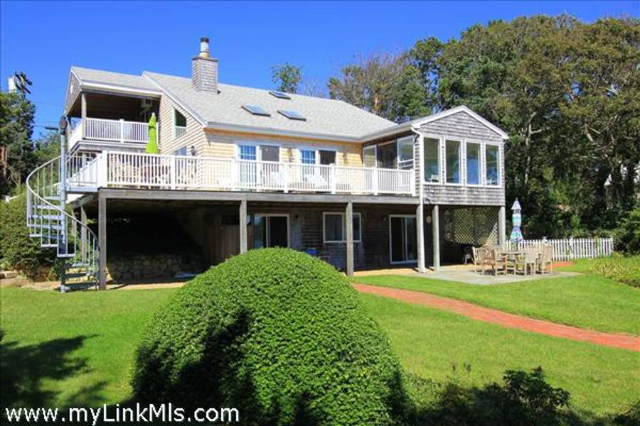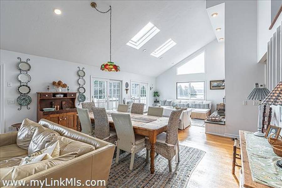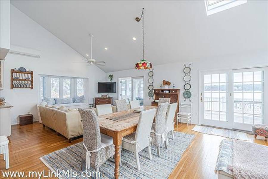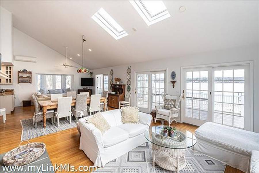 A rare opportunity, this Hines Point waterfront compound offers expansive views of the Lagoon and 100 feet of private beach. The home was built and has been enjoyed by the same family for gathering and summer recreation over generations. The main house offers an open first floor layout with high ceilings and large windows facing the water where you can watch sunrise over the water. A first floor bedroom and bath, expansive living and dining area, and an updated kitchen make up the first floor. There's also an inviting sunroom and large deck perfect for morning coffee or evening cocktails while watching the boats on the Lagoon. The second floor offers a large primary bedroom with en-suite bath and private balcony as well as a second guest bedroom. The bright walk-out finished basement has a family room, full bath, a bonus room, and additional storage space. The property also features a two-car garage and a charming boathouse at the edge of the sloping lawn. The beach is generous and sandy; inviting picnics, swimming, fishing and clamming or you can launch your kayak or paddleboard right from your backyard. The property has a mooring - available to a new owner with proper permitting. The calm Lagoon, which opens to the Vineyard Haven Harbor, is made for boating. The iconic Hines Point neighborhood is a short stroll to Tisbury town center with shops and dining and The Vineyard Haven Yacht Club.