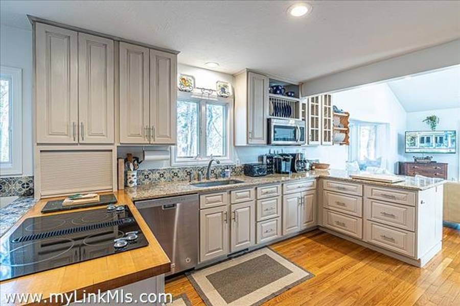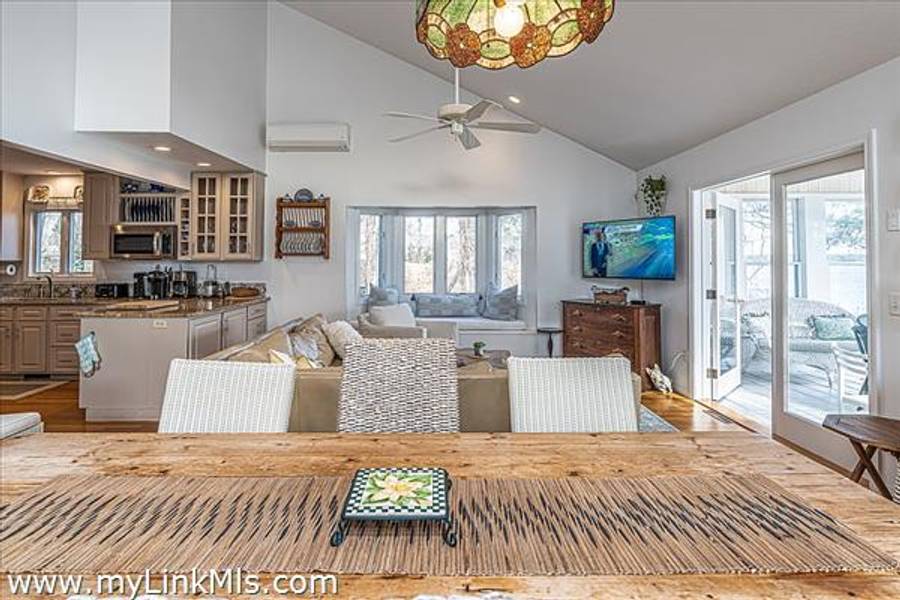 Open living and dining, updated kitchen, laundry area, full bath, a bedroom, sunroom and elevated deck.