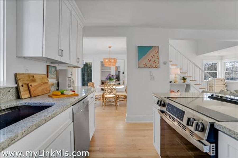 LUXURY COTTAGE-STYLE LIVING IN THE VILLAGE – WITH A POOL! This updated classic cottage is located in the heart of Edgartown Village, less than a quarter mile to Main Street. Upon arrival, you are greeted by a spacious porch and elegant French door entry that lead you into the dramatic foyer. The open living plan with kitchen, dining, and living area is light and bright. The first floor opens out onto a charming brick terrace and fenced backyard - the ideal location for outdoor living and entertaining. The swimming pool is the centerpiece of the backyard space. In this delightful cottage, there are a total of FOUR BEDROOMS, each with a full bath. A first-floor primary bedroom suite for comfort and convenience. An elegant staircase leads upstairs to two spacious bedrooms, each with its own private bath. Separating the bedrooms is a charming balcony lined with a wall of ample storage closets, blending style with exceptional functionality. The partially finished lower level includes over 500 square feet of finished space, including a 4th bedroom with its own sitting area, a full bath, and a separate laundry/utility room. There is over 2,000 sq feet of living space in this in-town cottage. Enjoy the benefits of in-town living with easy access to the village’s vibrant restaurant and shopping scene, and also take advantage of the strong rental history.